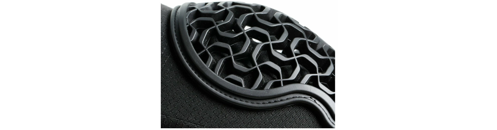 La genouillère Scarabeo est construite autour de la protection Pro-Shape Scarabeo, inspirée par les géométries des matériaux auxétiques présents dans la nature qui, suite à un impact ou une sollicitation, se dilatent simultanément dans toutes les directions, augmentant ainsi la zone de couverture.