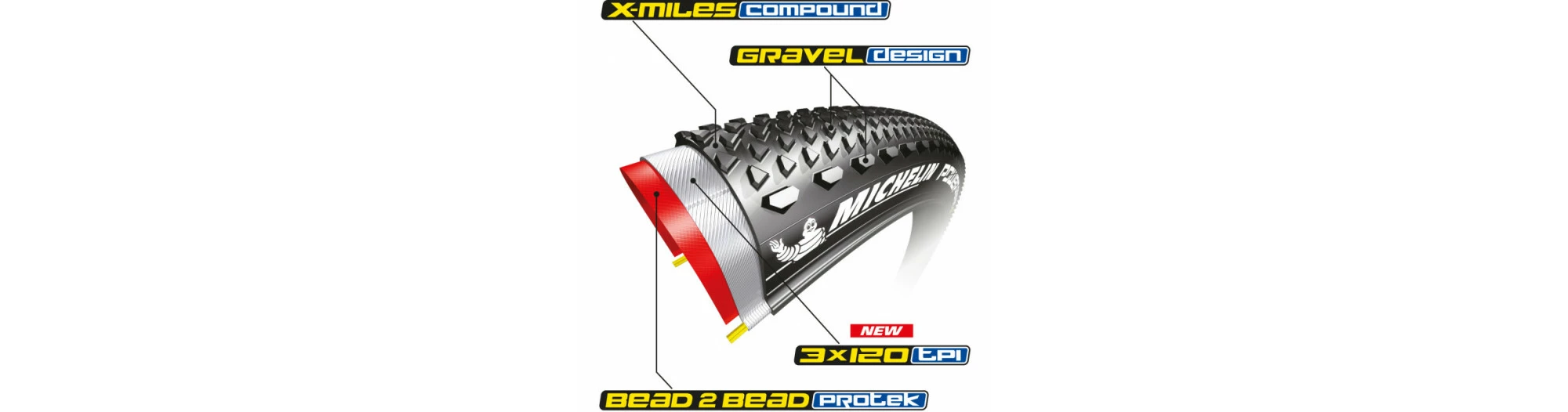 Le profil de la bande de roulement du pneu pliant Power Gravel 28″ de Michelin offre une excellente traction avec ses petits blocs de profil et une faible résistance au roulement sur différents types de surfaces grâce au mélange de caoutchouc X-Miles.
