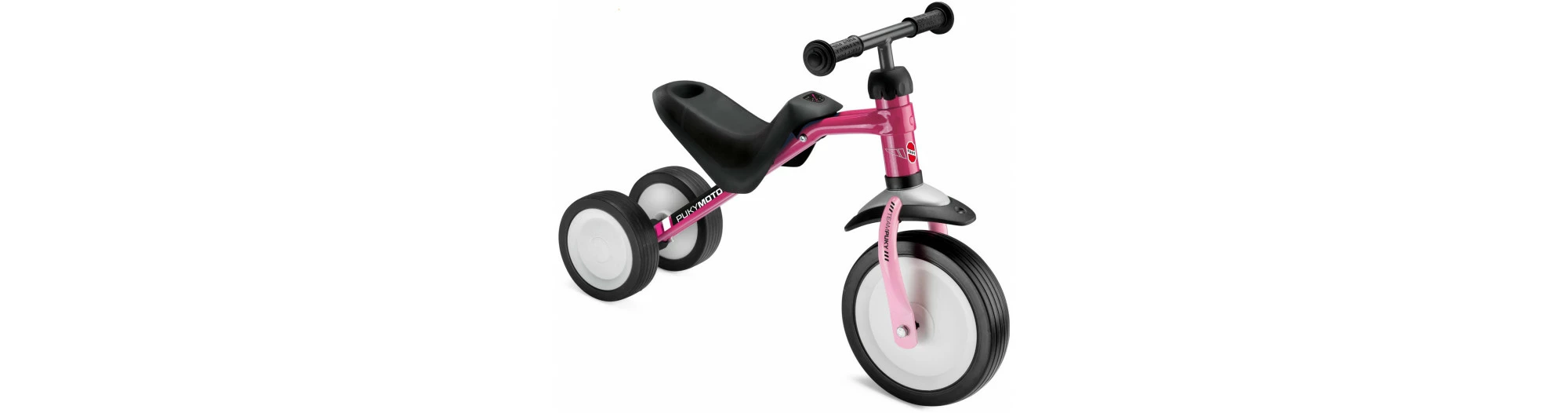 Le Tri-cycle Puky Pukymoto est un petit vélo d’apprentissage à trois roues. À mi-chemin entre un porteur 2-roues traditionnel et un porteur plus sécurisant à 4 roues, il offre un bon compromis entre stabilité et conduite plaisante et dynamique !
